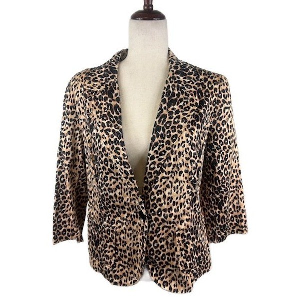 Vintage Y2K Harvé Benard Animal Print 3/4 Sleeve Blazer Coat Women's Size Medium