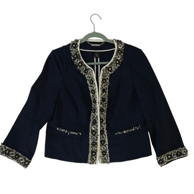 White House Black Market Women's Size 12 Navy Jewel Embellished Blazer Jacket