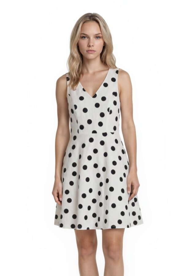 White House Black Market Dress Women's Size 4 White Black Polka Dot V Neck