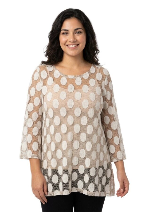 Yushi Polka Dot Sheer Top Blouse Women's Size Medium Beige White Lace