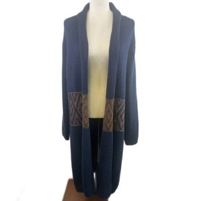 Bobeau Sweater Women's Size Large Blue Aztec Print Knit Long Cardigan Coatigan