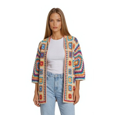 Charlie B Sweater Women's Size XS/S Multicolor Crochet Granny Square Cardigan