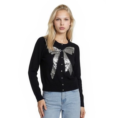 Charter Club Cardigan Women's Size XL Black Sequin Bow Rhinestone Button