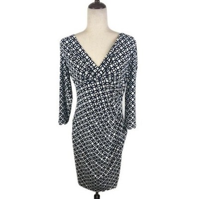 Chic Lauren Ralph Lauren Black & White Geometric Sheath Dress 3/4 Sleeve Size 10