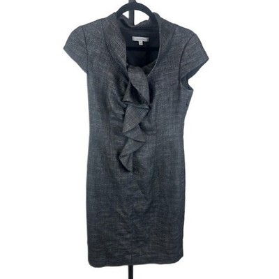 Classiques Entier Gray Tweed Ruffle Front Career Cocktail Party Dress Size 4