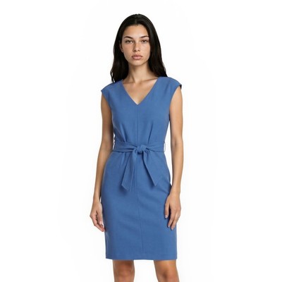 Closet London Women Size 10 Blue V Neck Cap Sleeve Tie Waist Sheath Dress