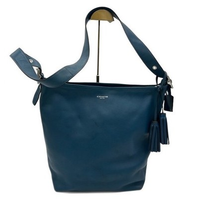 Coach Women's Teal Blue Leather Large Bucket Bag Shoulder Strap Tassel