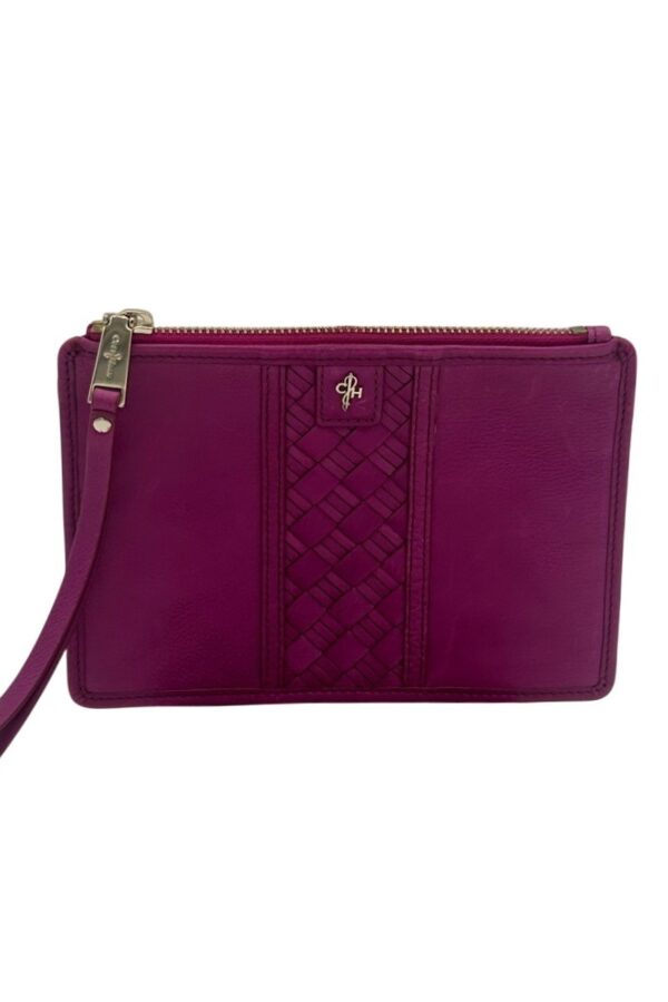 Cole Haan Wristlet Wallet Fuchsia Purple Leather Zip Around Clutch