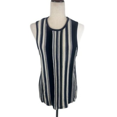 COS Sweater Women's Size Medium Striped Sleeveless Knit Top Navy Cream Casual