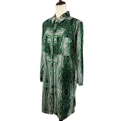 Derek Lam for Design Nation Green Abstract Print Shirt Dress Topper Size Large