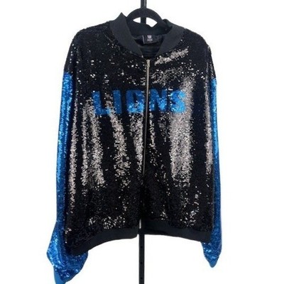 Detroit Lions Jacket Women's Size 2XL Blue Black Sequin NFL Varsity Bomber Coat