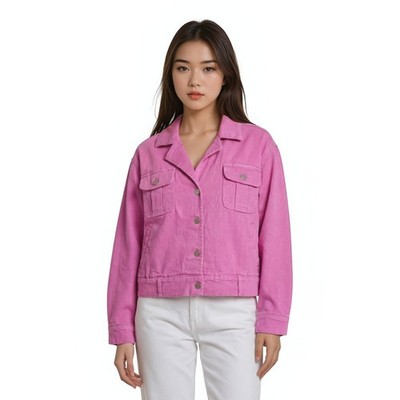 DG2 by Diane Gilman Trucker Jacket Women's Size XL Pink Denim Stretch Blazer