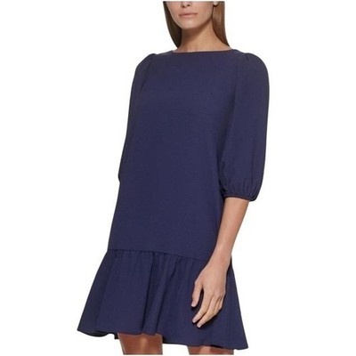 DKNY Navy Blue Dress Ruffle Hem Puff Sleeve Casual Career Size 10