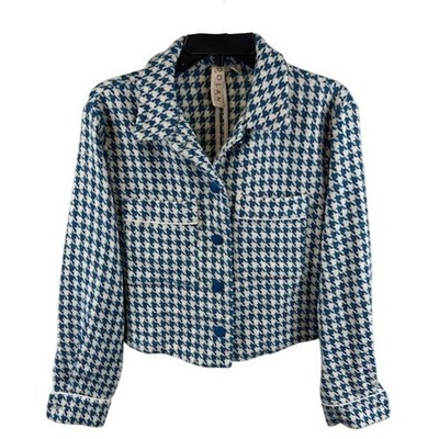 Dolan Left Coast Anthropologie Houndstooth Crop Jacket Blue Check Button Small