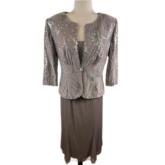 Alex Evenings Dress Suit Silver Sequin Holiday Party Wedding Size Petite 12P