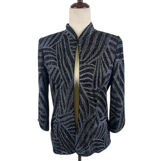 Alex Evenings Black Silver Jacket Top Sparkle Party Evening Occasion Size Small