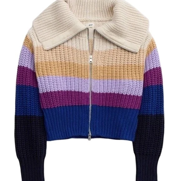 Features: Full Zip, Knit, Striped, Cozy, All Seasons