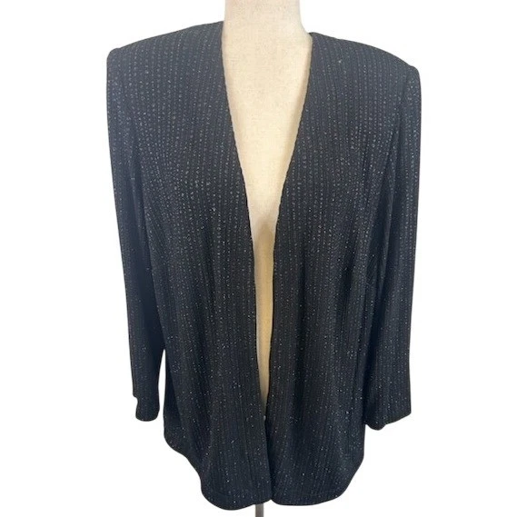 Alex Evenings Black Metallic Full Zip Jacket Blazer Evening Cardigan Size 1X