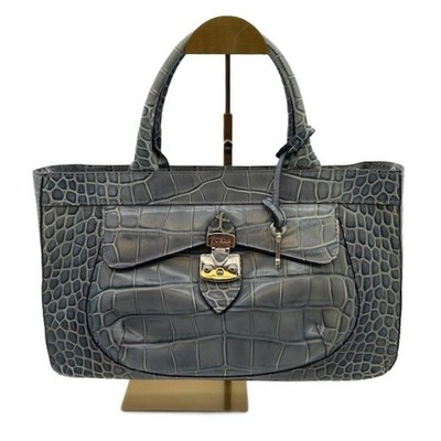 Furla Tote Bag Gray Crocodile Embossed Leather Satchel Purse Handbag 8x13"