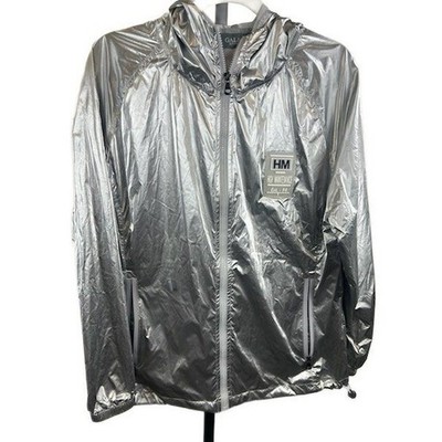Galaxy By Harvic Silver Metallic Hooded Windbreaker Jacket Coat Size Medium
