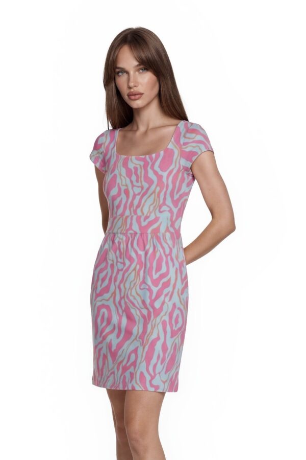 J McLaughlin Dress Womens Size XS Pink Blue Zebra Print Square Neck