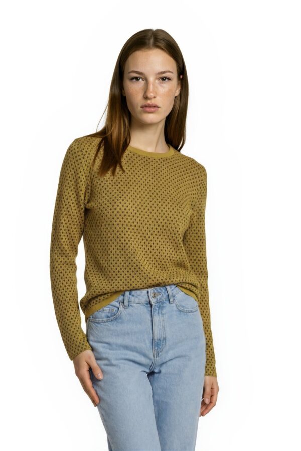 J McLaughlin Knit Top Womens Size Large Yellow Geometric Button Sleeve