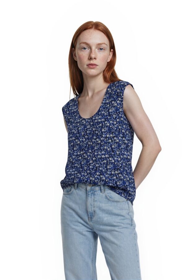 J.Crew Blouse Women's Size 0 Blue Abstract Dot Sleeveless V-Neck