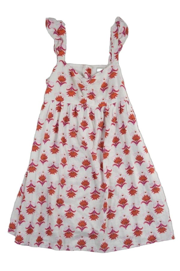 J.Crew Sundress Women's Size 6 White Orange Pink Floral Ruffle Strap Linen
