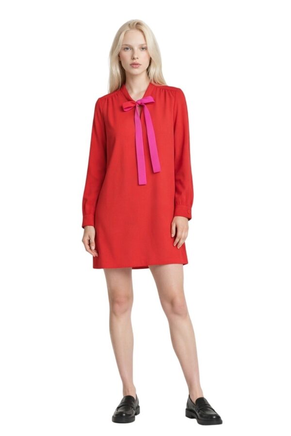 J.Crew Dress Women's Size 2 Red Tie Neck Contrast Trim Mod