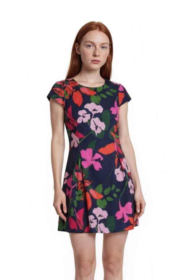 Jessica Howard Floral Dress Women's Size 14 Navy Blue Pink Cap Sleeve Fit Flare