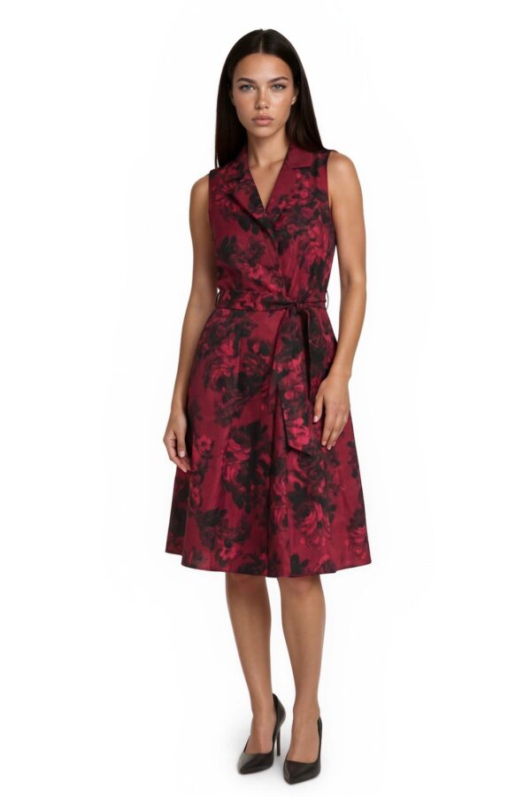 Jessica Howard Fit Flare Dress Women's Size 12 Red Black Floral Tie Waist