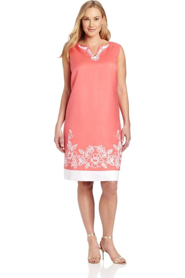 Jessica Howard Linen Coral Dress Floral Embroidered Sleeveless Sheath Size 24W