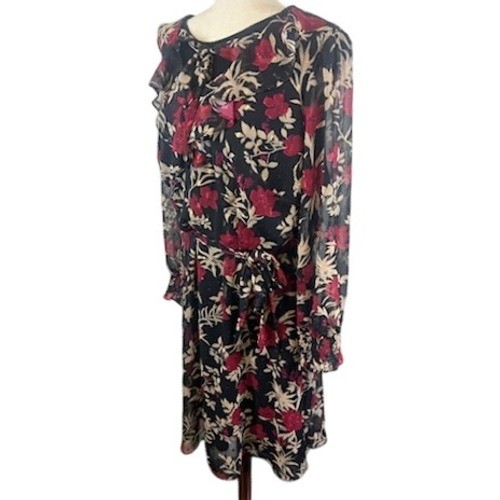 Jessica Howard Floral Chiffon Midi Dress Ruffle Trim Long Sleeve Size 22W