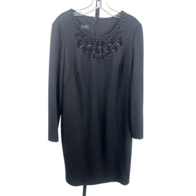 Jones New York Dress Women's Size 10 Black Sheath Long Sleeve Jewel Neck Holiday