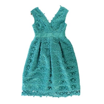 JJ's House Dress Women Size Medium Teal Green Floral Lace V Neck Cocktail Party