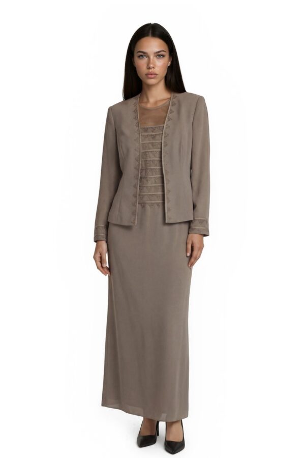 Jovani Evening Maxi Skirt Suit Womens Size 8 Taupe Beaded Mother of Bride Formal