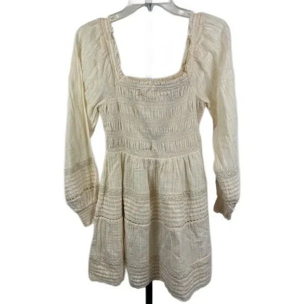 American Eagle Dress Womens Size Small Cream Smocked Square Neck Mini Milkmaid