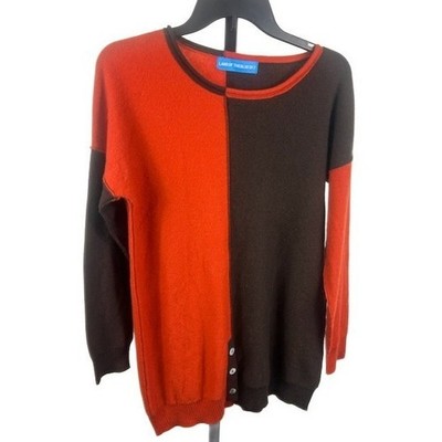 Land of The Bluesky 100% Cashmere Color-Block Sweater Orange Women's Size Medium