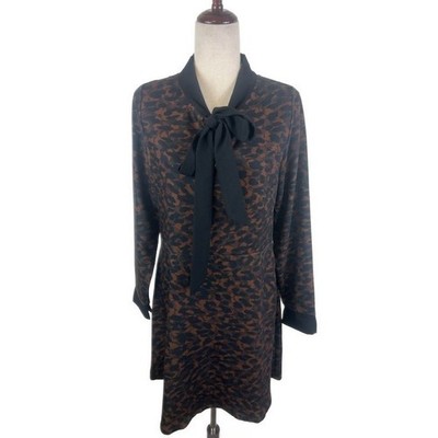 LaRoque Original Animal Print Dress Black Brown Tie Neck Long Sleeve Size Large