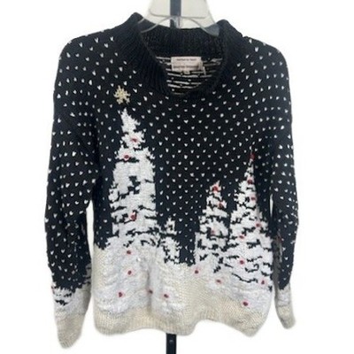 Lauren Hansen Knitted Hand Sweater Christmas Trees Snow Scene Black Size Small