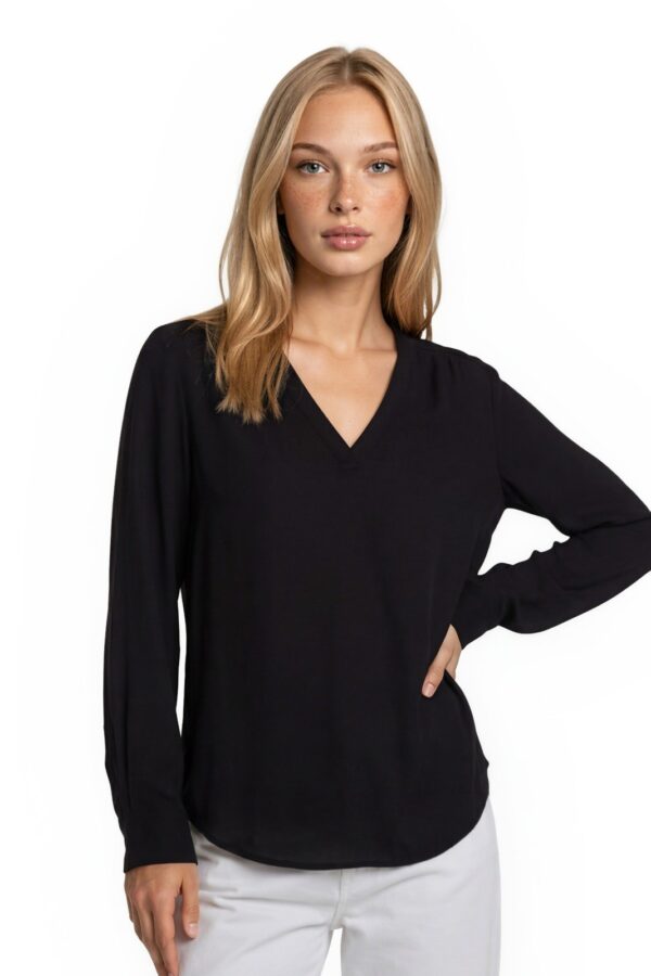Lauren Ralph Lauren 100% Silk Blouse Women's Size Medium Black V Neck Top