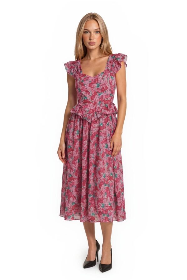 Laura Ashley Midi Dress Women's Size 8 Pink Floral Cotton Peplum