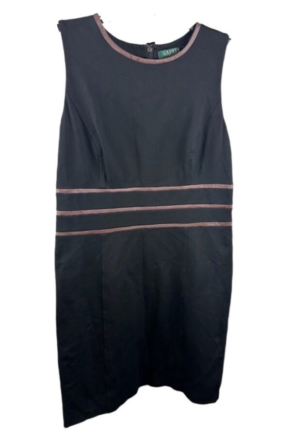 Lauren Ralph Lauren Black Dress Leather Trim Equestiran Career Casual Size 14