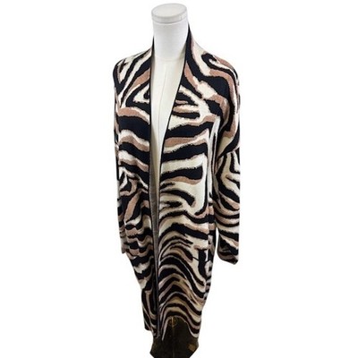 LB70 Lloyd Boston Tiger Print Open Front Duster Cardigan Long Sweater Size 1X