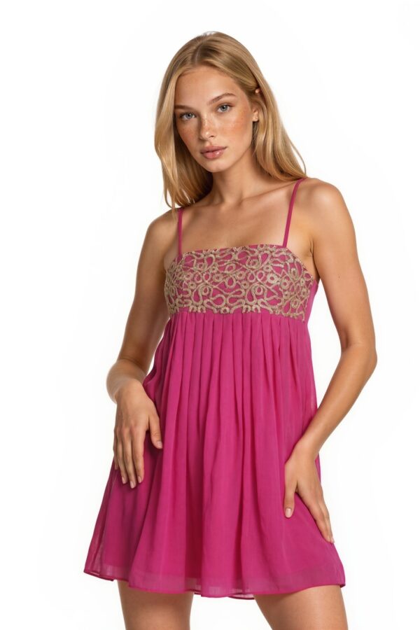 Lilly Pulitzer 100% Silk Babydoll Dress Women's Size 0 Pink Gold Soutache Mini