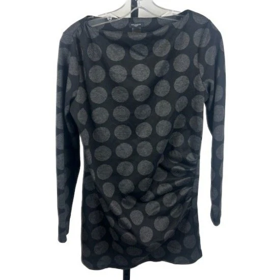 Ann Taylor Women's Size Medium Black Gray Polka Dot Boat Neck Long Sleeve Ruched