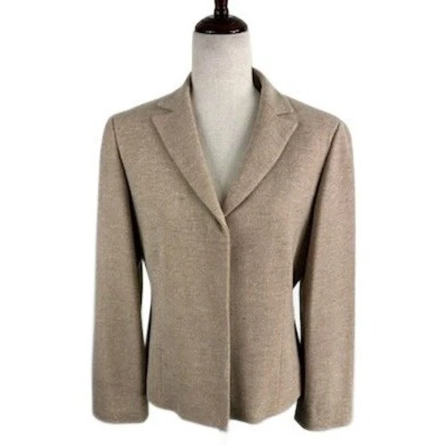 Anne Klein Blazer Jacket Beige Wool Blend Career Business Size 10 Petite