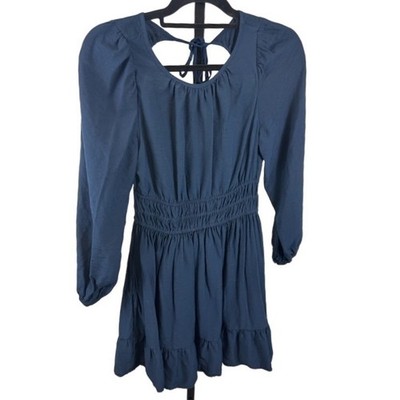 Madewell Dress Long Sleeve Tie Tiered Mini Ruffle Hem Navy Blue Size Small