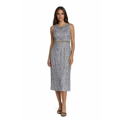 Mac Duggal Women's Size 4 Dusty Blue Beaded Sequin Pearl Waist Midi Dress
