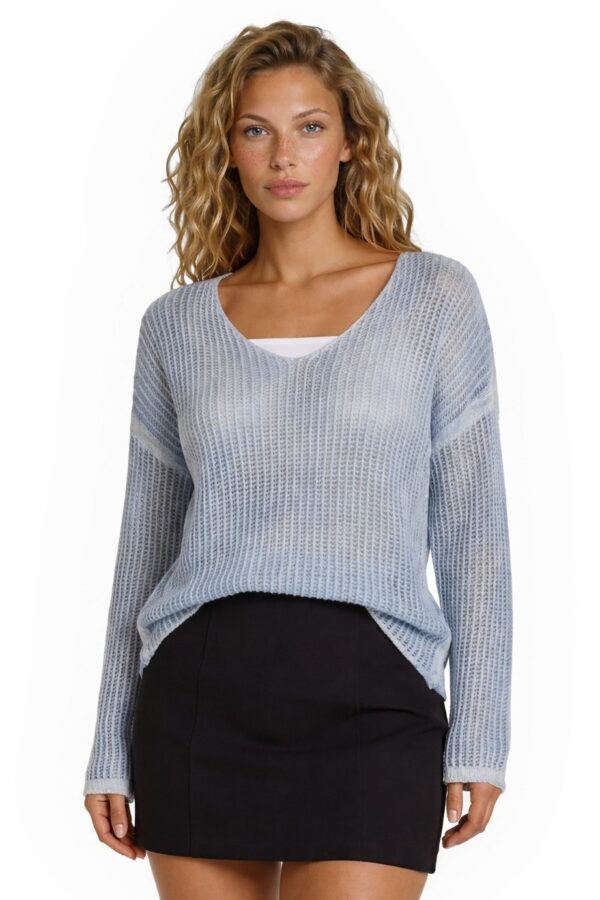 Made in Italy Women's Size Medium Blue White Acid Wash Open Knit Crochet Sweater
